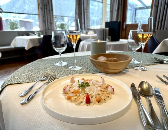 - 3× mehrgängiges Abend-Wahlmenü aus der ausgezeichneten Alpin-Aromaküche